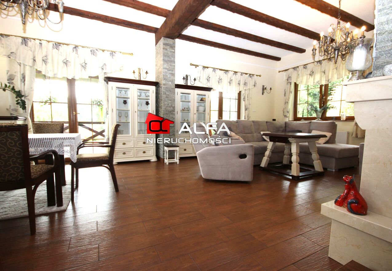 Teren posesji jest ogrodzony. Z tarasu i ogrodu piękne widoki. W najbliższym sąsiedztwie domu las i kilka nowych domów jednorodzinnych, co tworzy kameralną atmosferę.